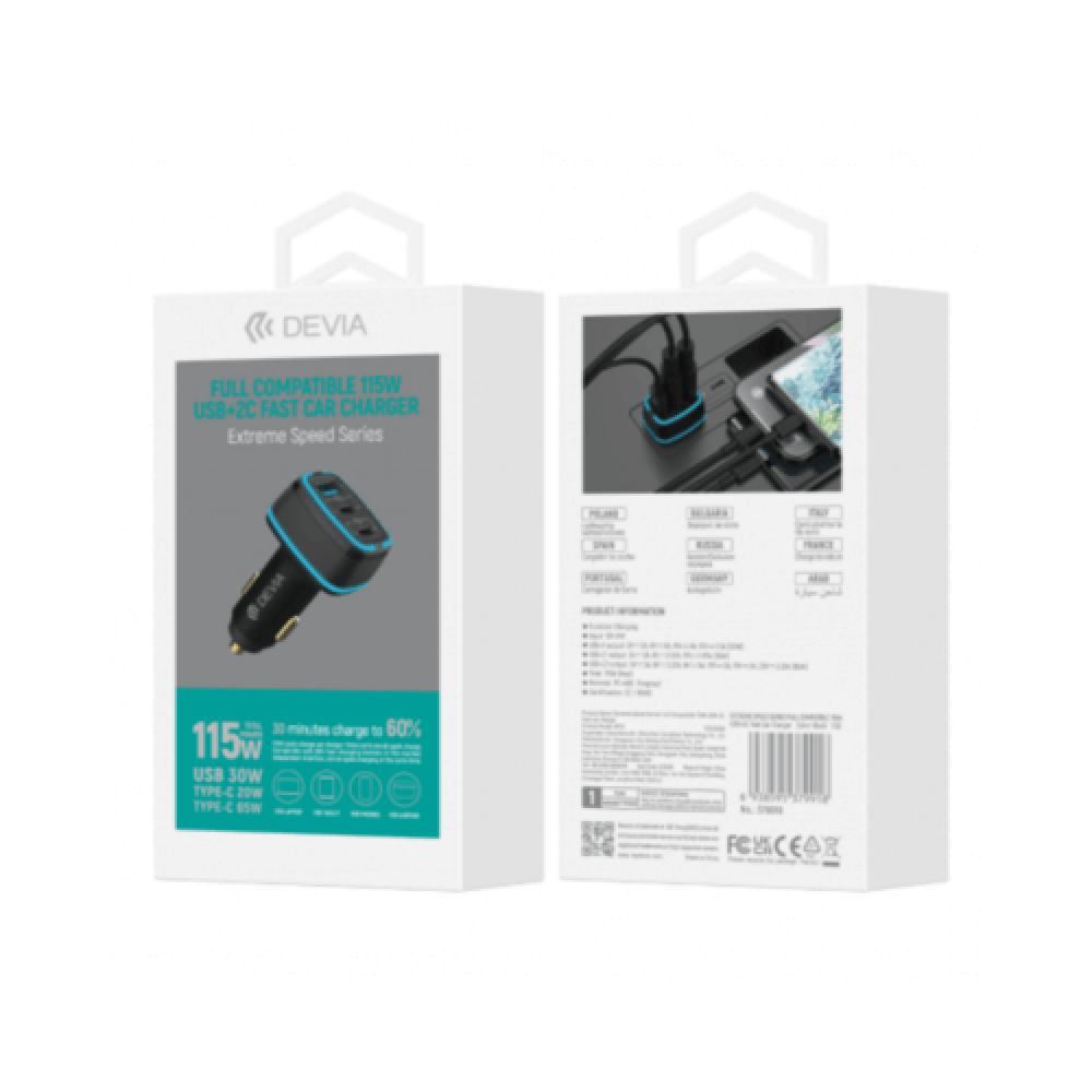 يعد شاحن سيارة سريع 115 واط ديفيا منفذين PD و منفذ USB خيارا جيدا للمستخدمين الذين يبحثون عن شاحن سيارة سريع و قوي يدعم الشحن السريع لأجهزة APPLE و ANDROID يتميز الشاحن بتصميم صغير و خفيف الوزن كما أنه يدعم مجموعة متنوعة من بروتوكولات الشحن السريع