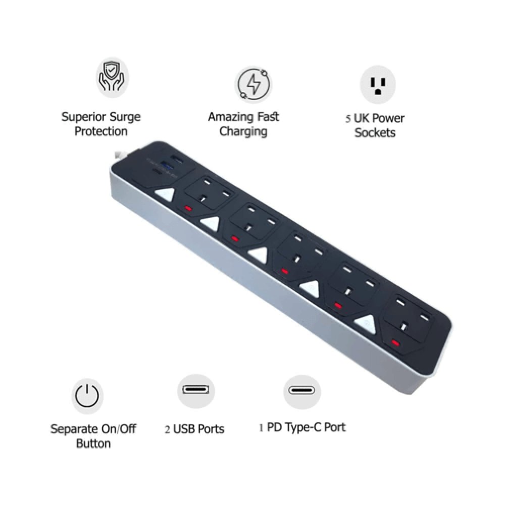 - مزودة بتقنية الحماية من التيار الزائد لضمان سلامة الأجهزة