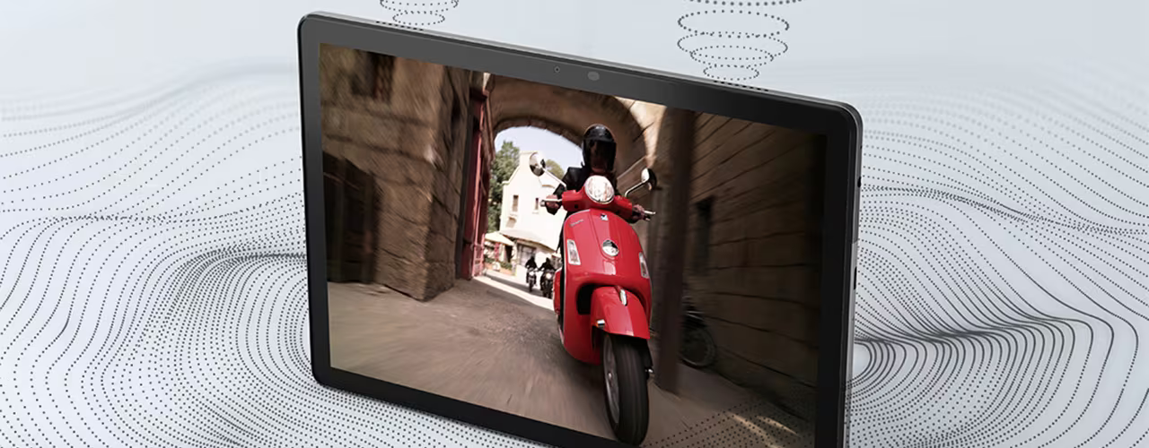 استمتع ببث الفيديو بشكل أكثر متعة مع شاشة LCD FHD مقاس 10.1 بوصة توفر ألوانًا زاهية ودقيقة تكملها مكبرات صوت مزدوجة تتميز بصوت Dolby Atmos® الغامر . معًا، يجعل كل هذا من Tab M10 Gen 3 خيارًا رائعًا لجلسات البث الطويلة، مع أعلى جودة بث للجوال متاحة لـ Netflix وPrime Video وDisney+ والمزيد.