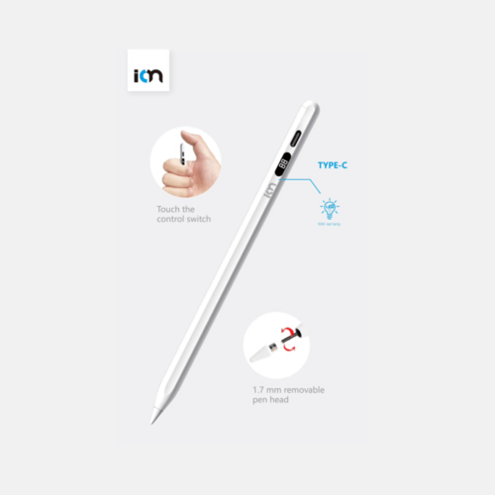 توافق الماركة : ION رقم الموديل : ION-P01 اللون : أبيض عدد القطع : 1 محتويات العلبة : ققلم ذكي 2 في 1 يدعم راحة اليد للايباد و الجوال ايون