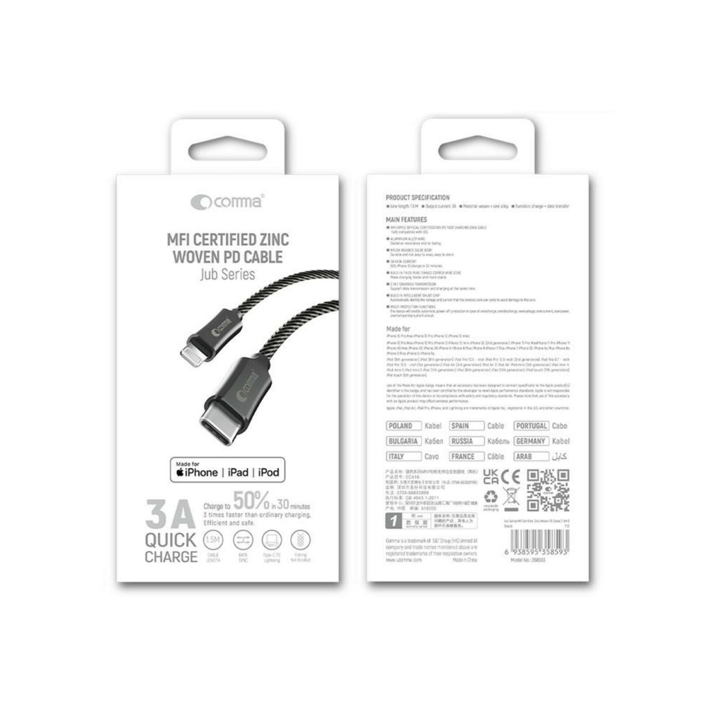 كابل USB-C إلى Lightning من كوما هو الحل الأمثل لشحن أجهزتك من آيفون بسرعة وكفاءة. تم تصميم هذا الكابل ليناسب أحدث أجهزة آيفون ويدعم أحدث تقنيات الشحن السريع. يتميز الكابل بجودته العالية ومتانته، مما يضمن لك الاستخدام طويل الأمد.