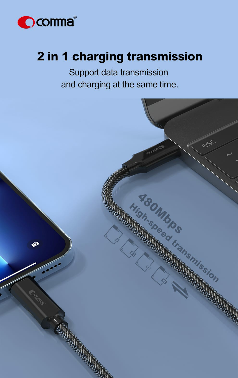 كابل USB-C إلى Lightning EC416 من كوما هو الخيار الأمثل لمن يبحثون عن كابل شحن عالي الجودة ومتوافق مع أجهزة آيفون. بفضل تصميمه المتين وميزاته المتقدمة، يضمن لك هذا الكابل تجربة شحن سلسة وممتعة.