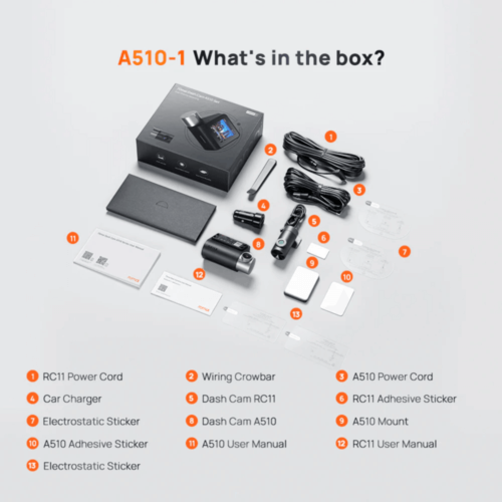 مواصفات - شاومي داش كام 1-3K A510 أمامية وخلفية :
