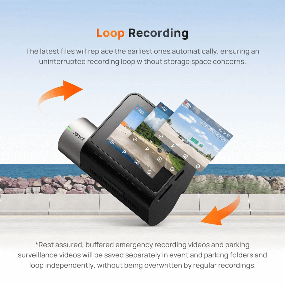 كن مطمئنًا ، سيتم حفظ مقاطع فيديو تسجيل الطوارئ المخزنة مؤقتًا ومقاطع فيديو مراقبة مواقف السيارات بشكل منفصل في مجلدات الأحداث والوقوف وحلقة مستقلة ، دون الكتابة عليها بواسطة التسجيلات العادية.
